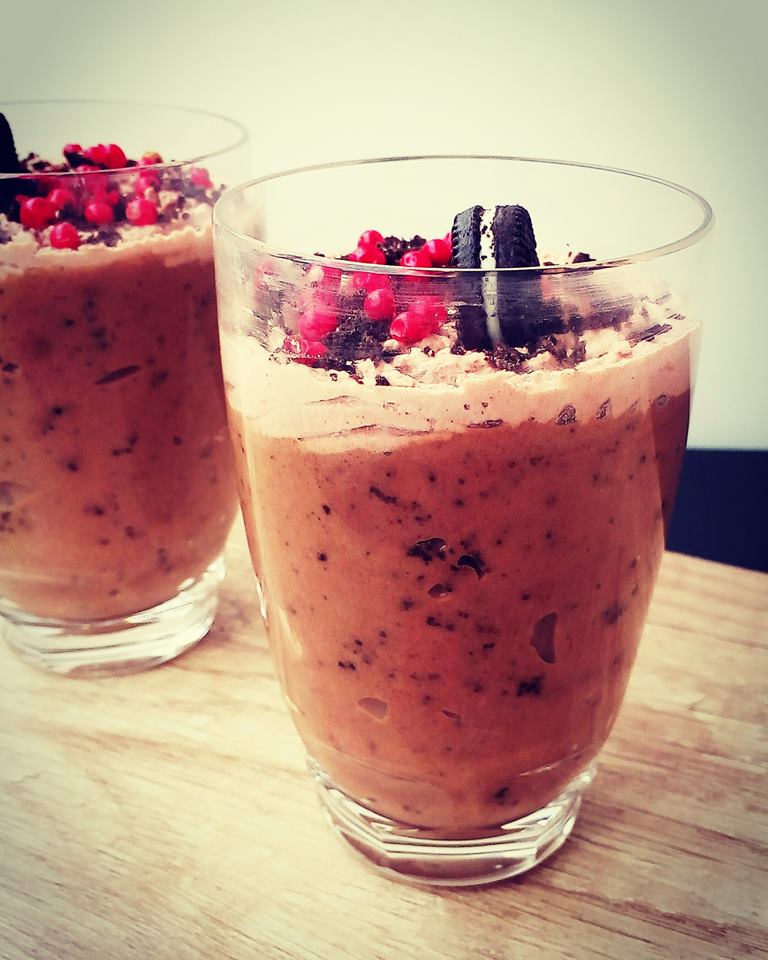 Μοιράζουμε το μείγμα σε ποτήρια,γαρνίρομαι πάνω με σαντιγί.
