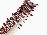 - Φτιάχνουμε ένα χωνάκι με ένα αντικολλητικό χαρτί, και αδειάζουμε την σοκολάτα μέσα. Κόβουμε λίγο την μύτη, και σε αντικολλητικό χαρτί, τραβάμε λεπτές γραμμές σε μεγάλο ζικ-ζακ, και σε ύψος όσο η τούρτα μας. Κατόπιν τραβάμε από πάνω αντίθετα ζικ-ζακ, ή ευθείες οριζόντιες γραμμές, ώστε να δέσουμε τα ζικ-ζακ, μεταξύ τους, φτιάχνοντας έτσι ένα πλέγμα.