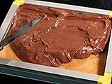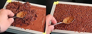 - Αδειάζουμε το μίγμα επάνω στην παγωμένη μους σοκολάτας, και την απλώνουμε σε λεία επιφάνεια.