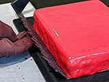 - Με μια μεγάλη παλέτα, τραβάμε απαλά, σταθερά, και προσεχτικά, το γλάσο από την μια άκρη στην άλλη, ώστε να στραγγίξουμε το περίσσευμα, και να μείνει ένα λεπτό στρώμα 3-4 χιλ. περίπου.