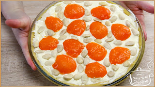 Το καλοκαιράκι ήρθε λίγο πιο νωρίς απ’ ότι το περιμέναμε και απαραίτητο συνοδευτικό με το απογευματινό μας καφεδάκι ή τσάι είναι ένα δροσερό γλυκό που όμως να μην είναι επιβαρυμένο με πολλές θερμίδες. Η βάση του είναι μια κλασική βάση τάρτας, εύκολη στην παρασκευή της και αφράτη κατά το άνοιγμα. Την ανοίγετε με τα χέρια δεν χρειάζεται να χρησιμοποιήσετε πλάστη. Επάνω από την βάση έχω βάλει μια μυρωδάτη μαρμελάδα βερίκοκο που την φτιάχνουμε εμείς σε 10′. Η βελούδινη κρέμα μπαίνει αμέσως μετά, είναι από τυρί κρέμα και γιαούρτι με λίγα λιπαρά, για να την αφρατέψουμε βάζουμε αυγά. Η διαδικασία είναι η εξής…χωρίζουμε τους κρόκους από τα ασπράδια, χτυπάμε τους κρόκους με το τυρί ενώ με τα ασπράδια θα φτιάξουμε μαρέγκα και θα την βάλουμε τελευταία μέσα στην κρέμα. Διακοσμούμε με αποφλοιωμένα βερίκοκα και ολόκληρα αμύγδαλα.