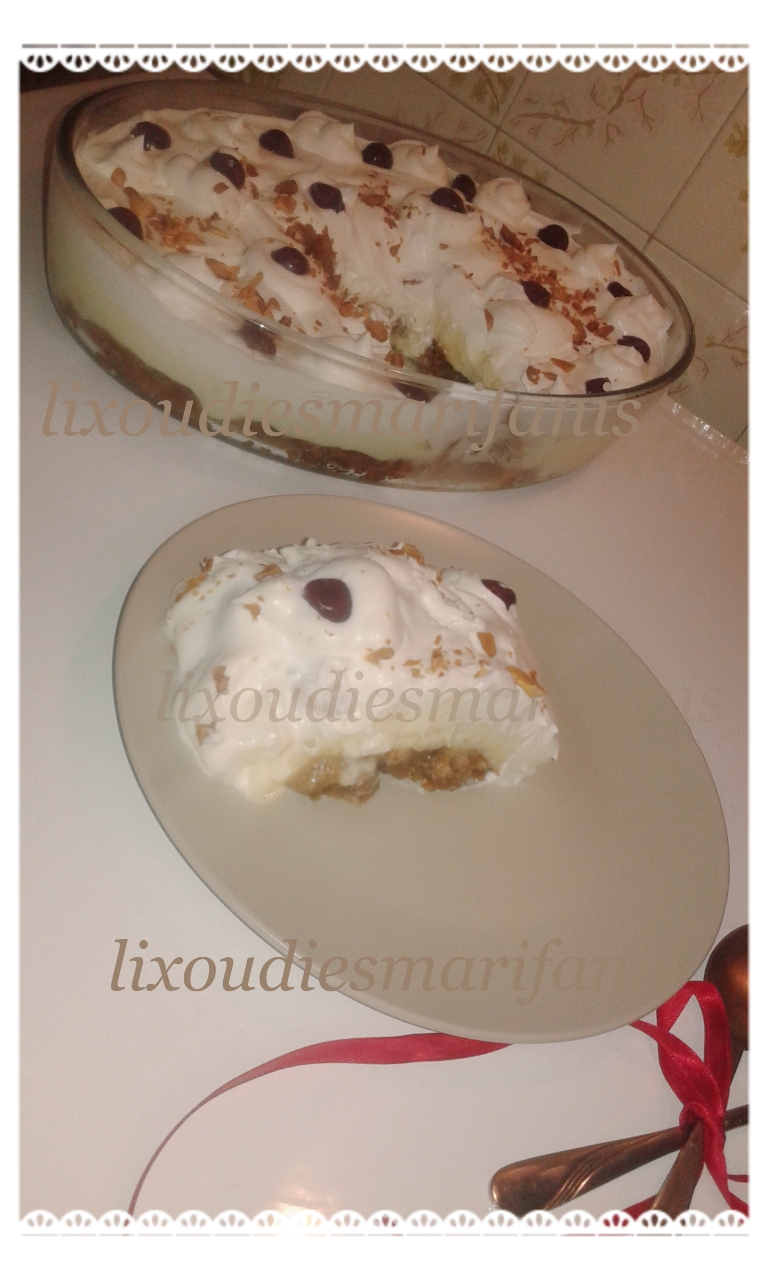 Καλή χρονιά καλοί μου φίλοι! Εύχομαι ο νέος χρόνος να σας βρίκε όλους ευτυχισμένους και γερούς! Μιας και μου ζητήσατε τρόπο ώστε να αξιοποιήσετε τυχόν μελομακάρονα που σας έχουν μείνει απ’τις γιορτές (πολλοί θα γελάτε,γιατί σε ποιον θα περίσσεψε τέτοια λιχουδιά?) προφανώς για να μου ζητηθεί θα πει ότι υπάρχουν και εξαιρέσεις…Γι’ αυτό εξασφάλισα μερικά μελομακαρονάκια προκειμένου να σας δείξω πως μπορείτε να φτιάξετε ένα φανταστικό εκμέκ με πλούσια κρέμα και αφράτη σαντιγί!!!! Τα υλικά που χρησιμοποίησα είναι απλά και πολύ οικονομικά. Εάν σας ενδιαφέρει να μάθετε πως το έφτιαξα τότε συνεχίστε την ανάγνωση!!!!