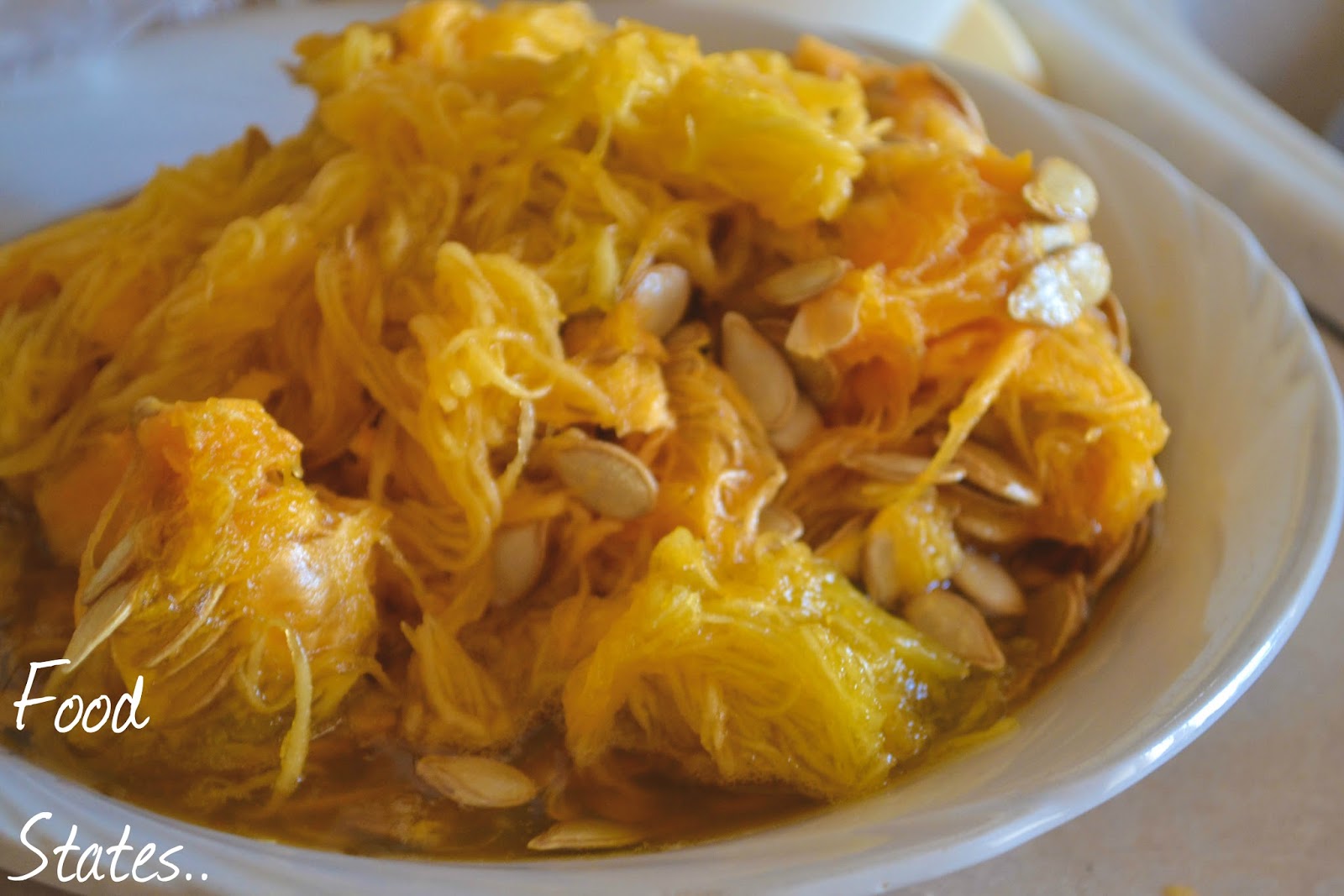1. Κόβουμε το επάνω και τω κάτω μέρος της Κολοκύθας (τα μέρη τον κοτσανιών). Την κόβουμε στην μέση και βγάζουμε τα σπόρια με την βοήθεια ενός κουταλιού.