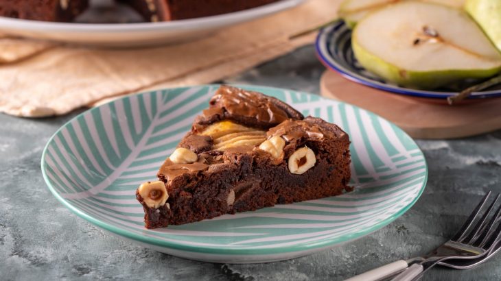 Ζουμερό, γεμάτο σοκολάτα, με φρέσκα κομμάτια αχλαδιού και τραγανά φουντούκια που κάνουν κάθε μπουκιά μοναδική. Το απόλυτο γλυκό για να εντυπωσιάσεις χωρίς κόπο.