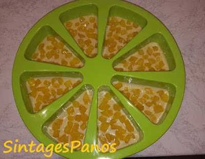 - Μοιράζουμε ίση ποσότητα κρέμας στις φόρμες. Θα πρέπει να έχουμε πάχος 1 εκ. κρέμας μάξιμουμ.